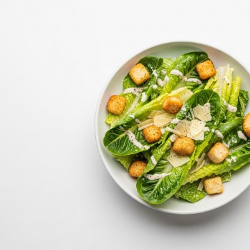 Romaine Lettuce, Croutons, Parmesan Cheese, caesar dressing.