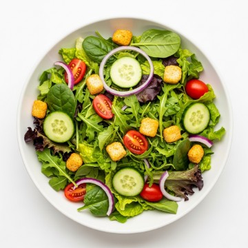Romaine, Baby Spinach, Arugula, or Mixed Greens. With grape tomatoes, cucumbers, red onions, and croutons.